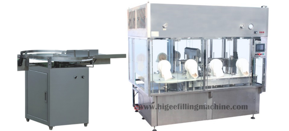 Cap feeding mechanism: the bottle moves intermittently to the capping station through the turntable, and the capping turntable is controlled by the optical fiber detection to control the working signal of the capping servo motor, so as to achieve the function of capping with a bottle and no bottle, no capping. The capping mechanism is designed on the principle of double-arm manipulator, which avoids the instability of the previous spring or single-arm manipulator after long-term use. The whole process of capping does not require air source and vacuum, and the capping part has an automatic positioning function, which is stable, no pollution, accurate positioning.