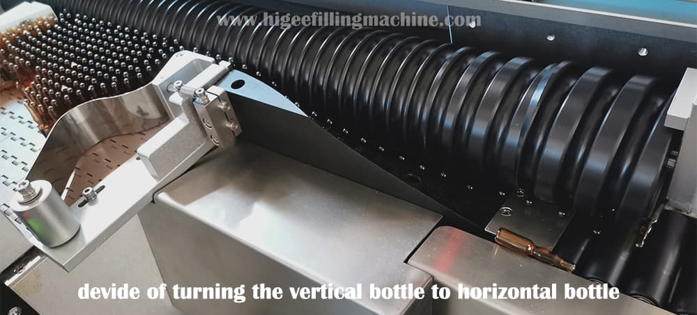This time, client need a speed of 300-500 BPM, this is the reason our standard machine will not be suitable, and as the ampoules are small, speed requirements allows not the ordinary feeding method or manually feeding, we use a vertical-horizontal at the beginning, horizontal-vertical at the end to achieve fully automatic labeling.