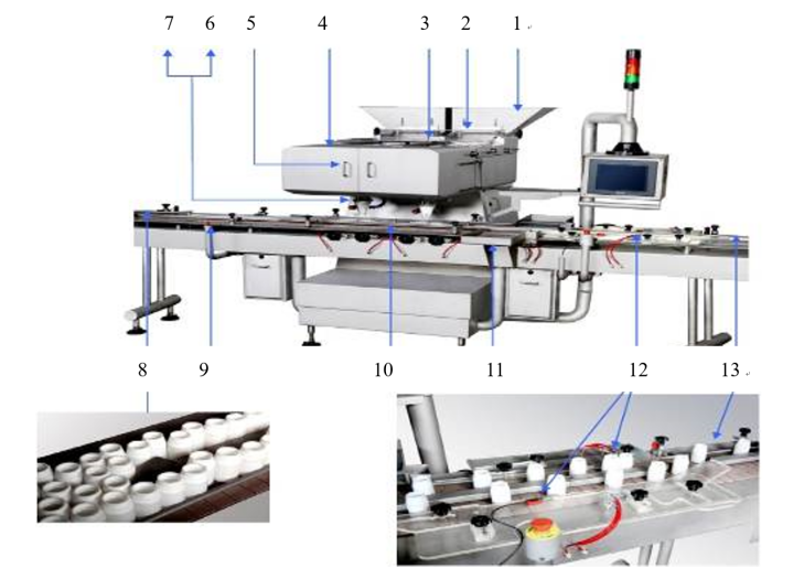 1) The product (pill,tablet,capsule etc)that you want to count is feed into the feed bin.Then Operator can be observed through windows inside of feed bin.